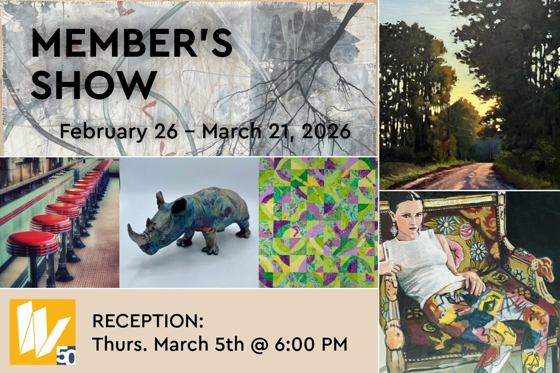WCFA Gallery space can host standing cocktail receptions, seated dinners for up to 64, and audience-style seating for any event. In the Classroom, we can host art classes or smaller community meetings. Fill out a request form to get started.
